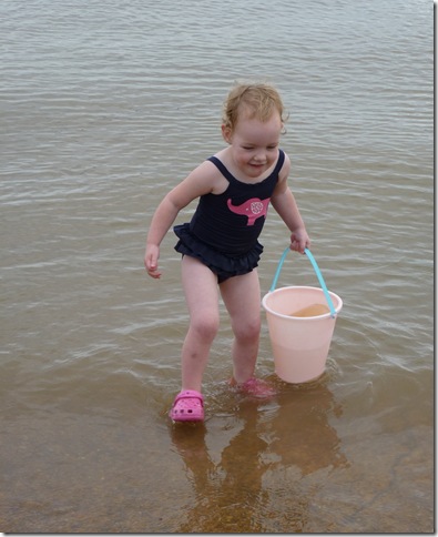 After naptime, we made the 5 minute drive up the road to Sardis Lake. I really can't believe this is the first time we've done this since moving here. The fishermen were out, so we didn't get the best spot to play, but Avery had a blast filling her buckets. Bella eagerly swam after sticks Todd threw for her too. The water was freezing, so I was happy to stick behind the camera on dry ground.