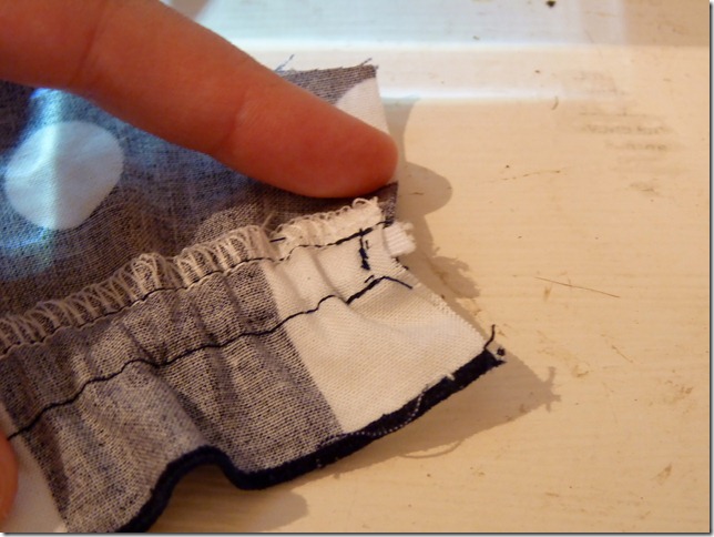 Once you have fed the elastic through the casing, stitch down each end to secure it in place.
