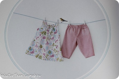 Now, on to my sample. This is such a simple but sweet design. It has gathers on either side of the tie and along the back neckline. It came together very quickly, and I have no complaints about the pattern instructions or illustrations. However, I did run into one issue. This is a size 2 tunic meant for Tandy. As you can see, it is currently fitting my oldest who is a size 5/6. I’ll let you know how the sizing runs with anything else I sew from this book. I guarantee there will be a next time!